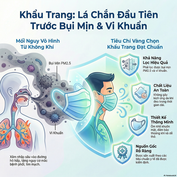 Theo các nghiên cứu y khoa, bụi mịn PM2.5 và vi khuẩn, virus trong không khí có thể xâm nhập sâu vào đường hô hấp, làm tăng nguy cơ mắc các bệnh về phổi, tim mạch và suy giảm miễn dịch. Vì vậy, lựa chọn khẩu trang có khả năng lọc hiệu quả, ôm khít khuôn mặt và an toàn khi sử dụng lâu dài là yếu tố then chốt.