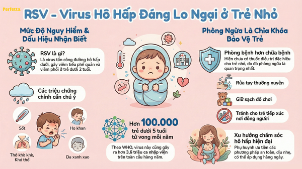 RSV (Respiratory Syncytial Virus) là một trong những nguyên nhân hàng đầu gây viêm tiểu phế quản và viêm phổi ở trẻ dưới 2 tuổi. Virus tấn công mạnh vào đường thở dưới, dễ tái nhiễm nhiều lần trong năm.